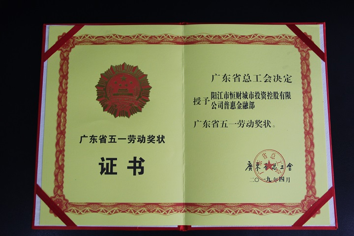 廣東省五一勞動(dòng)獎(jiǎng)狀——普惠金融部
